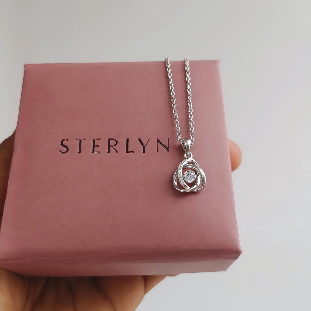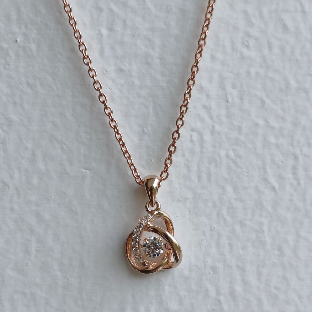 The necklace features a stunning ribbon-shaped pendant that captures light beautifully, making it a standout piece. Its elegant design is perfect for any occasion.