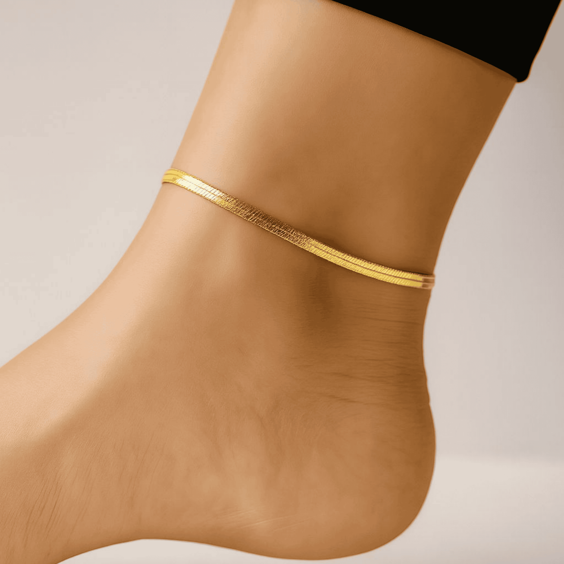 Our ankletโs sleek and minimalistic design enhances both casual and festive outfits, making it the perfect accessory for any occasion.