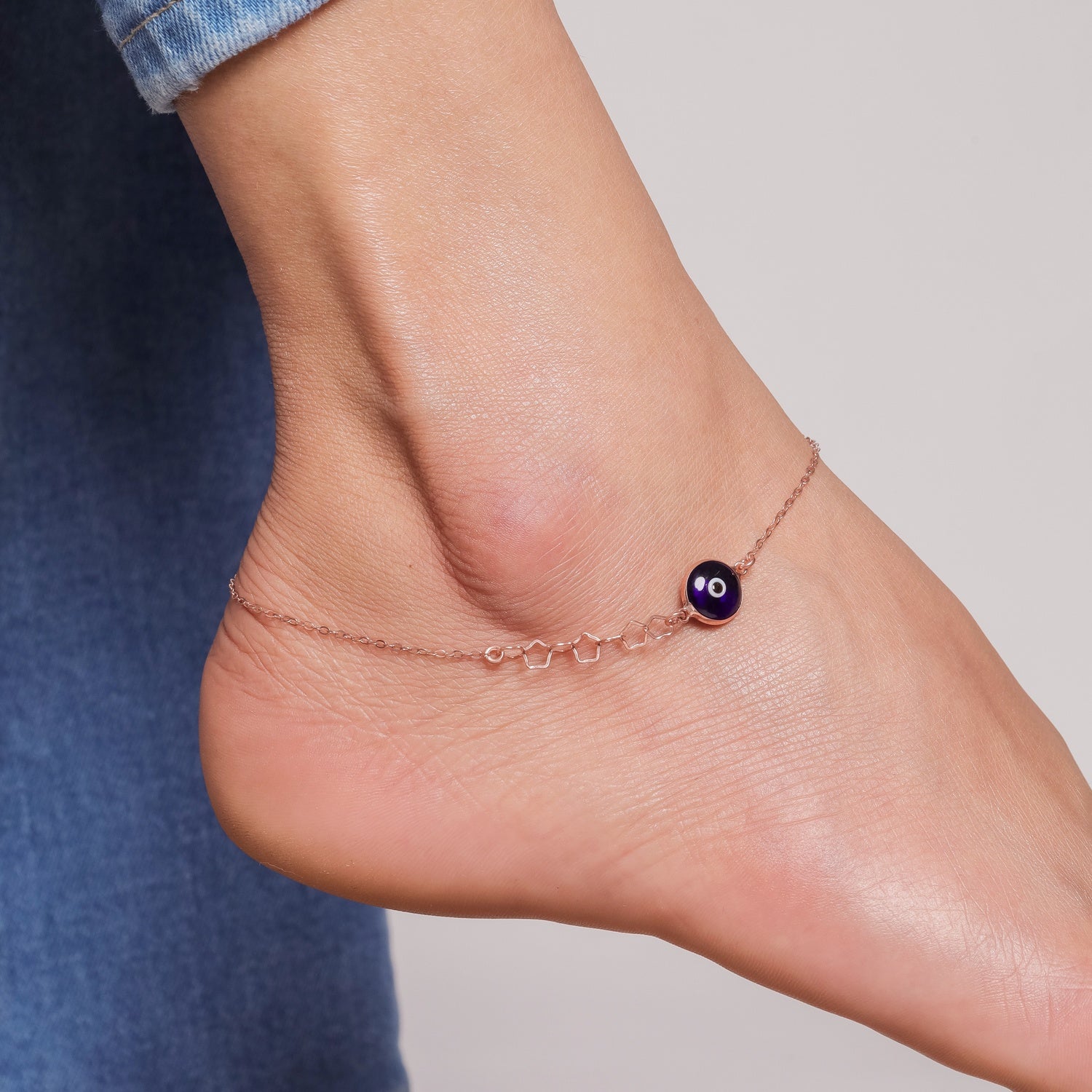 Introducing the "Evil Eye Blessing Anklet" in radiant 925 sterling silver, bathed in a luxurious rose gold hue. This charming anklet combines style and protection, with each delicate eye bead warding off negativity and inviting positivity. Adorn your ankle with this enchanting talisman, blending ancient mystique with modern elegance for a truly captivating look.