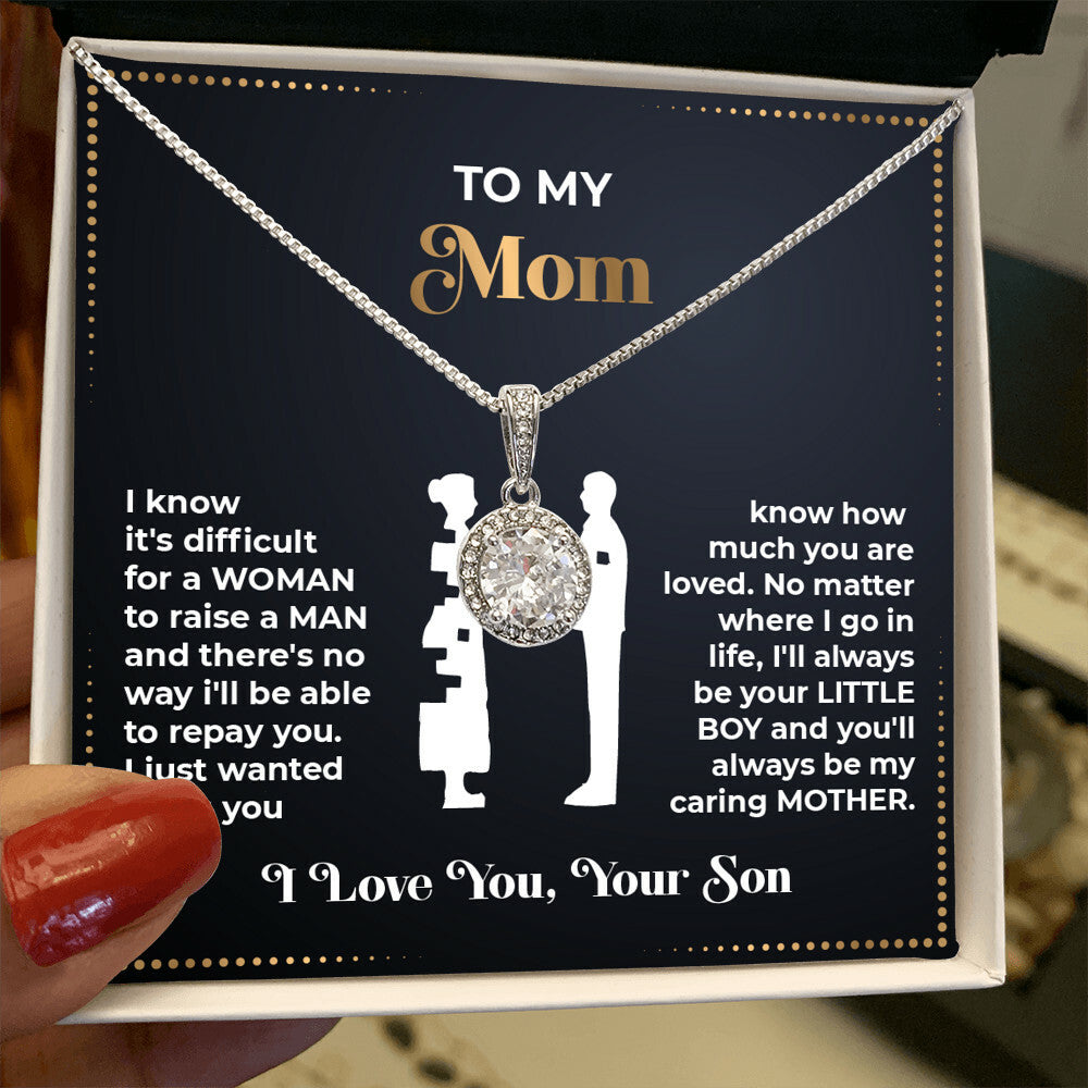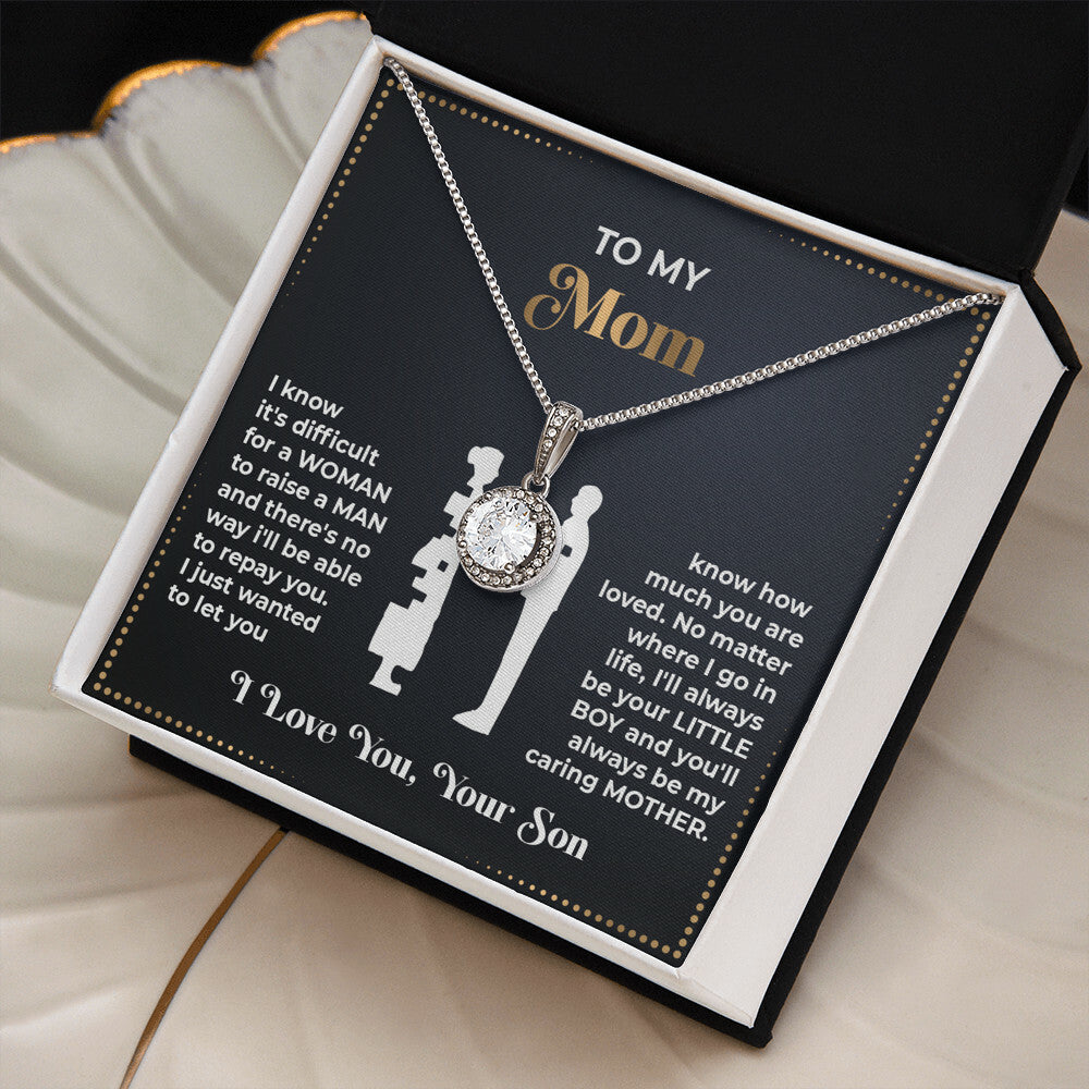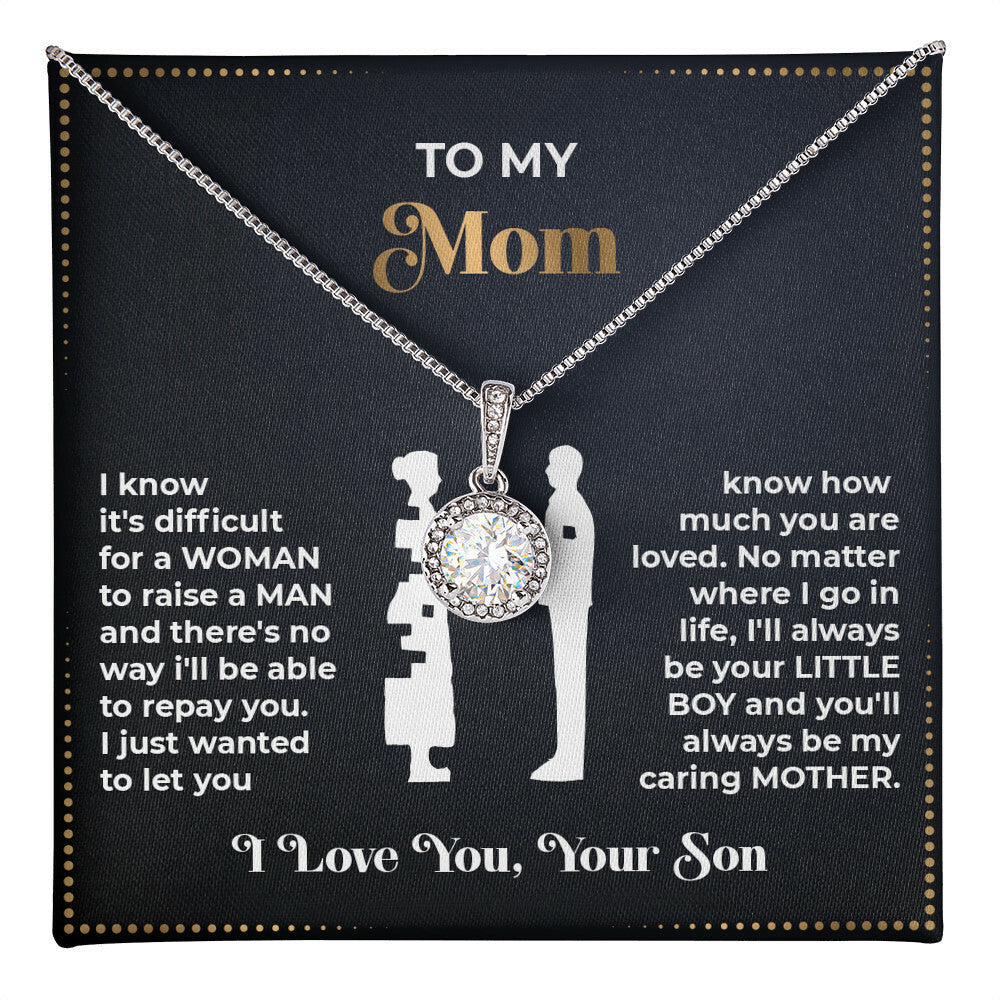 I know it's difficult for a woman to raise a man and there's no way i'll be able to repay you. I just wanted to let you know how much you are loved. No matter where I go in life, I'll always be your little boy and you'll always be my caring mother.