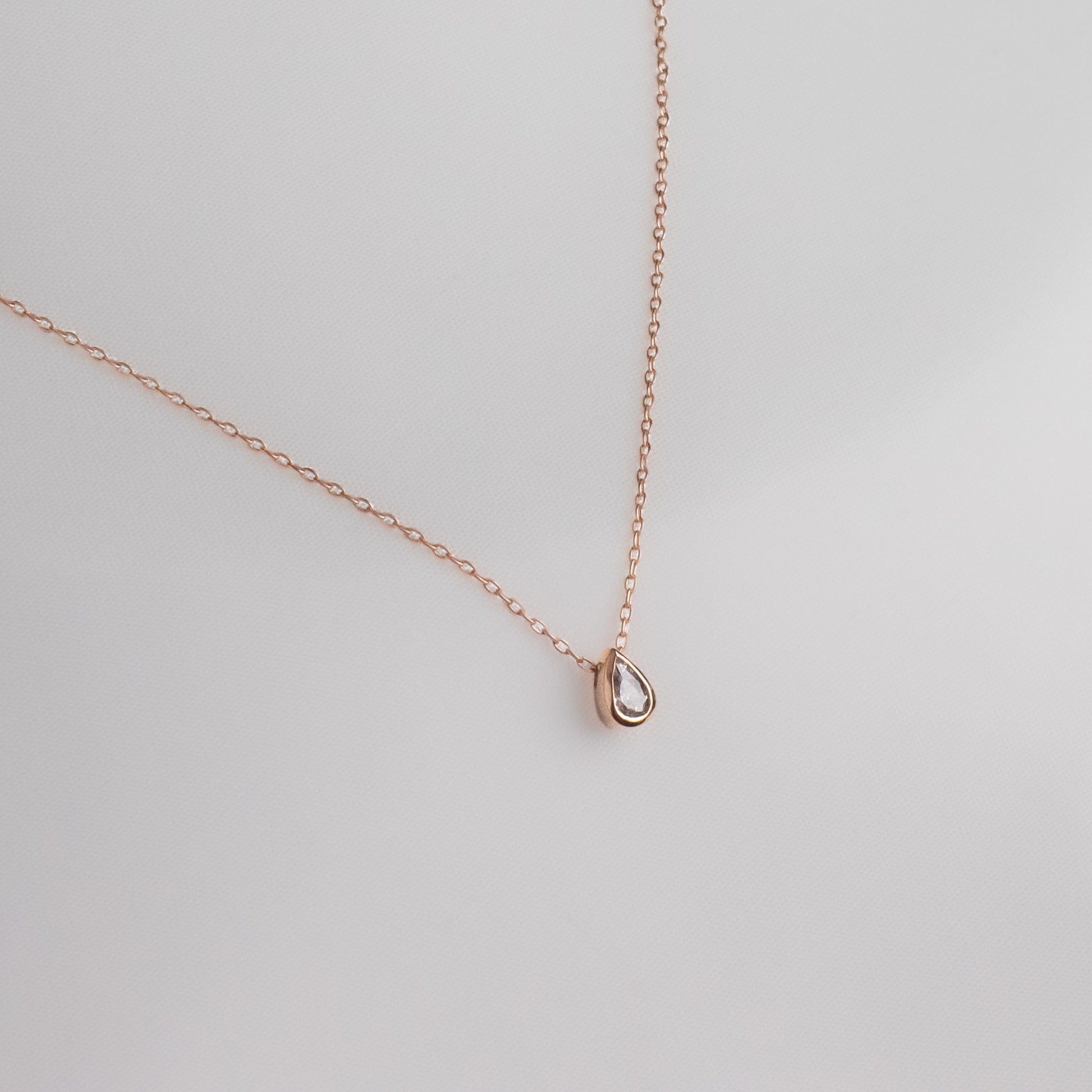Experience the elegance and sophistication of the Rose Gold Water Drop Pendant. Perfect for any occasion, this piece is a must-have for your jewelry collection.