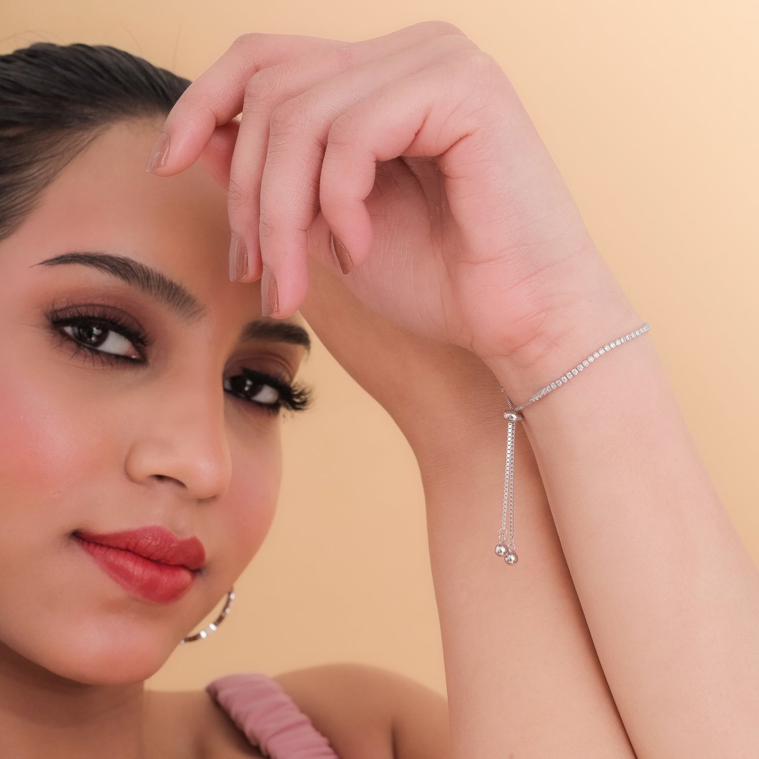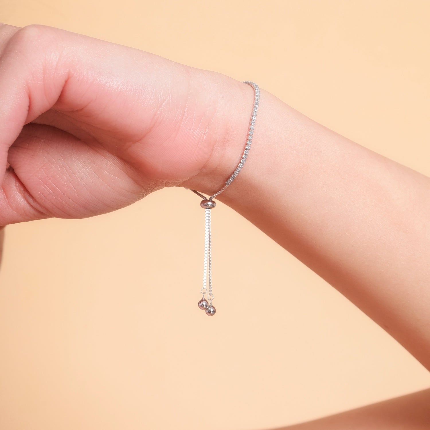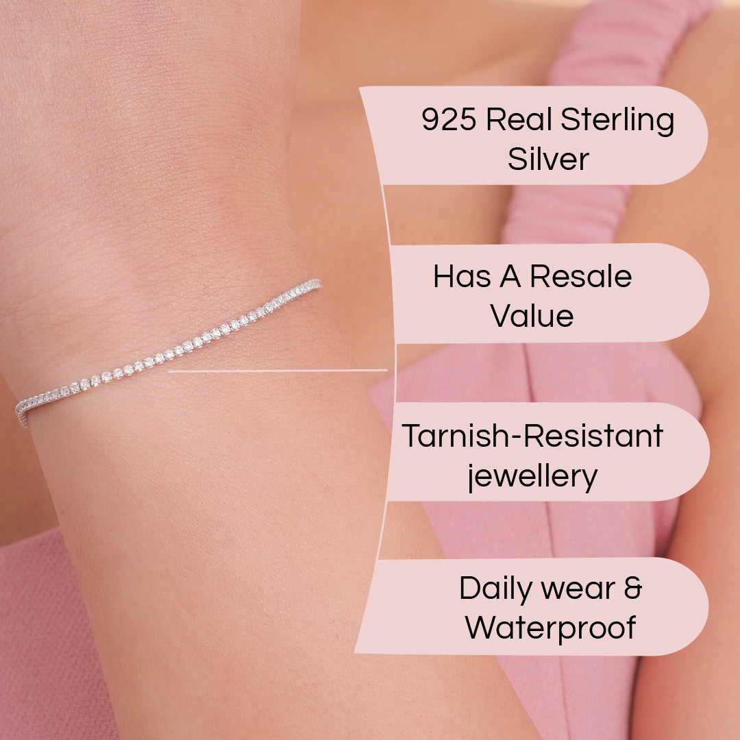 Here's our Tennis Adjustable Bracelet, a minimalistic beauty crafted in 925 sterling silver, adorned with brilliant white CZ stones.